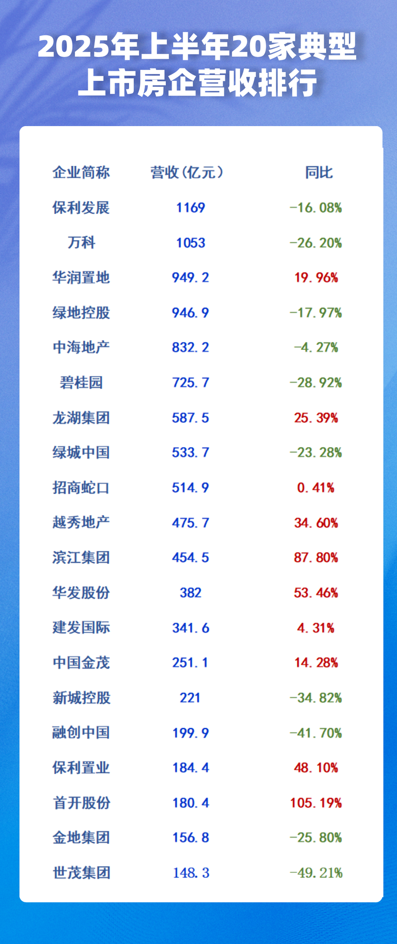 2025年上半年上半年上市房地产公司的财务报告就像一面镜子,反映了新的行业模式。根据东方财富的公司和财富网络公告,北京新闻贝克金融合并了20家通常列出的房地产公司的收入数据,发现该行业仍处于深度调整期间,与企业的对比继续加剧。房地产正在从“规模竞争”转变为“稳定行动”的新阶段。通常,在今年上半年,只有Poly的发展(从那里称为“ Poly”),而Vanke一直在列出“ 1000亿个俱乐部收入”。值得注意的是,Shoukai Co,Ltd和Binjiang集团的增长率超过80%,并且与趋势相抵触。同时,真正的E Comploestate的一半收入拒绝了,而Shimao集团和Sunac China的收入将近一年下降了一半。一些中央和州属性占据了多米尼T市场地位通过依靠其财务利益和资源整合能力,而大多数私人房地产公司仍面临诸如拒绝收入和高债务压力之类的挑战。该列表不再是规模竞争,而是对公司风险抵抗的“压力测试”。图表/Kouena只有Poly和Vanke进入“ 1000亿收入俱乐部”。从通常列出的20家房地产公司的收入数据来看,整个行业收入量表在2025年上半年仍然显示出落后的趋势。这些公司的平均收入增长率仅为7.72%,易受伤害。如果使用500亿元和1000亿元人民币,则用作主要部门,20个常见的房地产公司将被划分为三个明确的Echelons。第一个梯队中只有1000亿个俱乐部,包括波利和范克,收入分别为1,169亿元和1003亿元人民币。只有凡克(Vanke)留在“比瓦(Biwa)Nheng“过去。第二个梯队是500亿至1000亿元人民币的营地,共有7家房地产公司,包括中国和格陵兰的资源,均收入超过900亿元人民币;中国的海外土地和乡村花园超过700亿亿元人民币; long for Long Group for Long Group for Chine and Chinder Entival Enteration Comporys the Merchants Shekou Is villir yekou Is Yuu yuu yuu in 50英国各地竞争了各种票价,各有50亿美元。 Echelon是最凶猛的中央企业,中国的土地,中国的房地产,以及所有者包括Greenland Holdings和Greentown的乡村花园和长期的责任梯队是一个营地,共有11家房地产公司,来自Shimao集团的Yuexiu房地产。它是Yuexiu房地产和Binjiang集团等主要区域领先的房地产公司;还有当地的国有企业,例如Huafa和Shoukai Co,Ltd。还有一些前顶级房地产公司经历了债务危机,这些危机已经落入了这个营地,例如Sunac China和Shimao集团。修复了Sunac China的债务后,其业务逐渐恢复,但其规模量表不再与高潮相同。差异很大。值得注意的是,Shoukai的增长率份额双倍。企业的差异化变得更加清晰,主要以收入增长速度出现。 Poly,Vanke和China Resources Land在前三名中排名,所有收入都超过900亿元人民币,但增长率差异很大。土地资源土地的正增长近20%,而Poly和Vanke分别下降了16.08%和26.2%。尽管我的行业我S整个压力下,一些中型房地产公司仍在通过不同的技术实现增长。其中,该集团的Groupinjiang,Yuexiu房地产和Huafa股票的增长率超过30%,Binjiang增长了87.8%,Shoukai股份增长了105.19%。 Shoukai Co,Ltd的收入使年度上半年的一年翻倍,这主要是由于大量的集中住房交付。但是,Shoukai Co,Ltd的净利润有限公司在今年上半年损失了14.36亿元人民币,并且存在“收入增加但没有增加收入”的现象。在长江三角洲地区的深层种植期间,宾吉安格集团的收入显着增长了87.8%。 Yuexiu房地产和Huafa Co,Ltd依靠大湾地区市场的支持,分别达到34.6%和53.46%的增长率。 Huafa Co的收入有限公司在今年上半年也从16日增加到2024至12,最多4个区域。通常,在20家Karlead的房地产公司中,一半(10)的收入仍然下降,从10%下降到50%。 Shimao集团最大的崩溃达到49.21%,大约一半。 SUNAC中国也下降了41.7%。挑战仍然存在,房地产公司的转型即将到来。近年来,国有企业和中层企业表现出更强的抵抗力。 Poly,中国资源土地,中国海外房地产,中国商人Shekou,Greentown中国(中国通信建筑集团),Yuexiu房地产等,都有高收入排名,所有这些都有中间企业或地方企业的背景。这些房地产公司的收入相对稳定,逐年崩溃甚至正增长,这主要是由于其较低的融资成本和更强的资源获取能力。特别是在第一和二线城市,中央州财产有明显的好处。此外,当前的购房者更喜欢选择政府信誉的州和中间企业主,他们认为他们具有更强的确保建筑物交付的能力,这直接转化为销售福利。在土地市场中,拥有丰富资金的国有企业和中层企业仍然是土地征用的主要力量,为未来的售价提供了保证。相比之下,大多数私人房地产公司,除了某些公司(例如Longfor Group和Binjiang Group)外,仍处于巨大压力。乡村花园,Sunac China和Shimao Group都看到收入已下降了25%以上。私人企业仍在与资本连锁店,销售,债务决议等方面挣扎,其规模收购量表需要废除,从而影响了后来的发展。值得注意的是,越来越多的房地产Panies正在研究“第二增长曲线”,以通过非开发业务(例如光资产,建筑代理业务和商业运营的转型)来提高收入。最常见的是中国资源的土地。在今年的上半年,中国资源的土地运营以及购物中心,办公楼,酒店,长期租金等的收入和收入。此外,在今年上半年,Long For Group Business的总营业业务和服务的总营业业务和服务是132.7亿元人民币,在一年中的下半年创下了创纪录的纪录,价值22.6%。尽管一些公司的运行良好,但整个行业仍面临着诸如需求疲软,房屋价格下跌和库存销售缓慢的挑战。修复私人房地产公司债务的过程很慢,而且流动性中毒尚未注意到。行业内部人士认为,房地产行业正在进入新的发